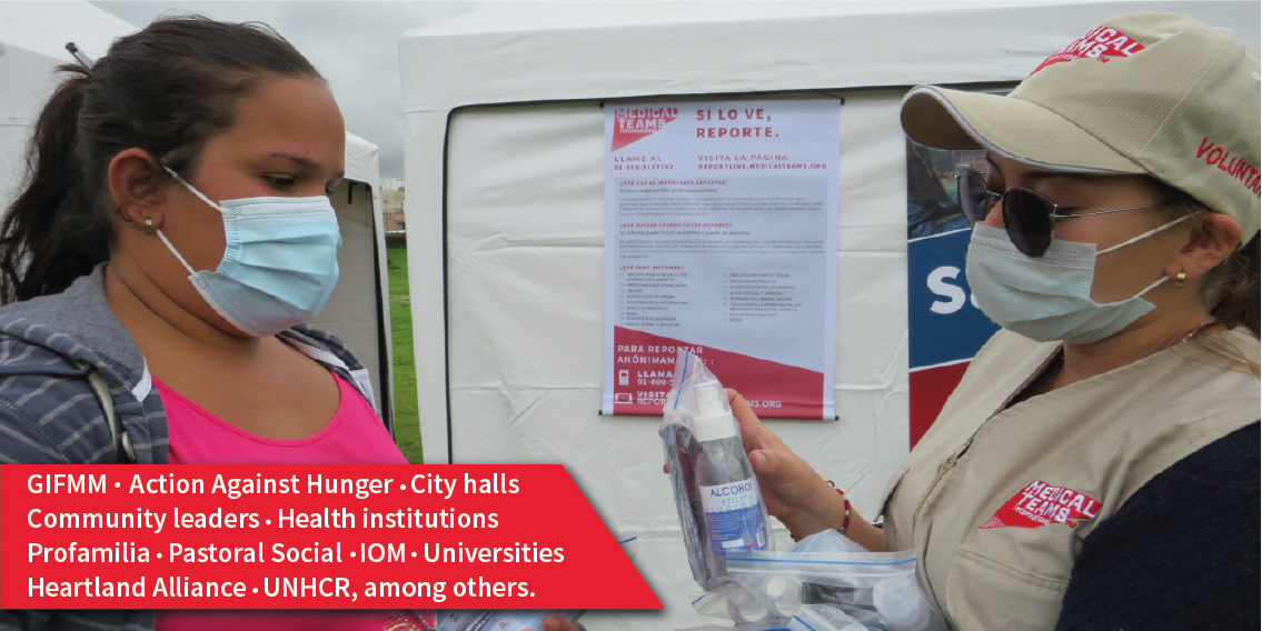 In the beforementioned six cities in Colombia, Medical Teams works through a network of 104 community health volunteers (CHVs) identified from targeted neighborhoods and deployed within those communities to provide household and community level interventions. The volunteers focus on public health education and risk prevention, linking Venezuelan migrants, Colombian returnees, and vulnerable Colombian host communities with existing health facilities collaborating with Medical Teams to provide subsidized and free health care.